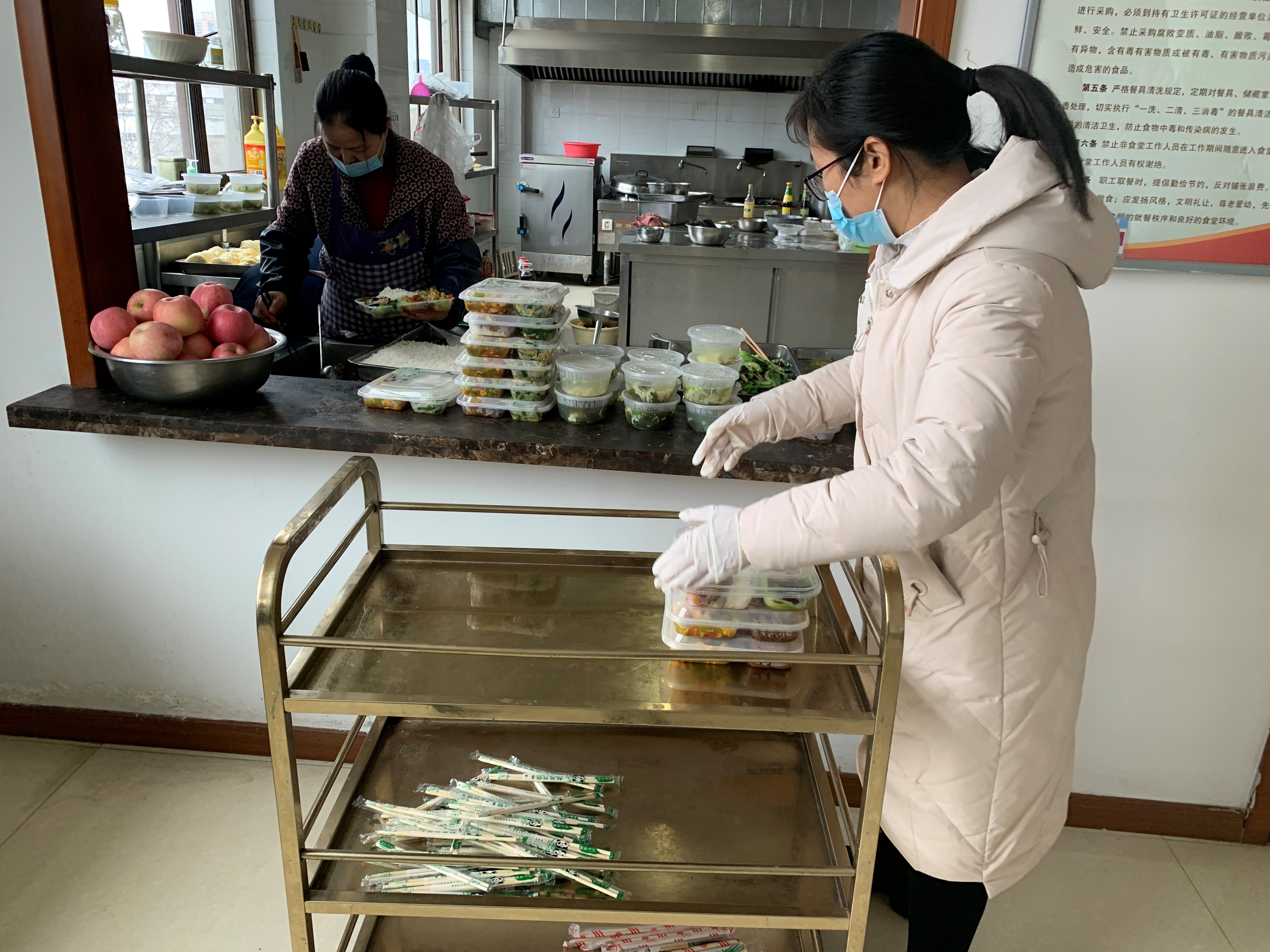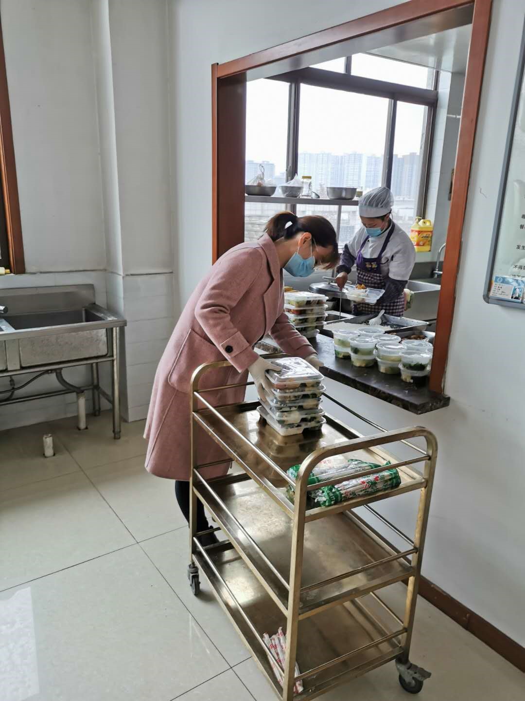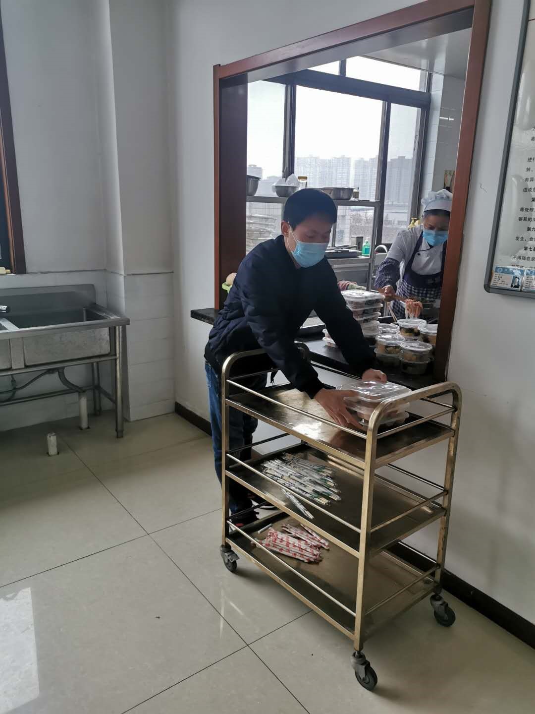 西电财司全面复工以来,为避免职工因用餐所造成的人员聚集问题,食堂采取了一系列有效举措来做好疫情防控下的供餐工作,第二党支部党员充分发挥先锋模范作用,协助食堂工作人员做好一次性餐具消毒、配餐、餐车清洁等工作,党员志愿者的加入减轻了食堂供餐人员的压力,营造了有序、高效、暖心的用餐氛围。