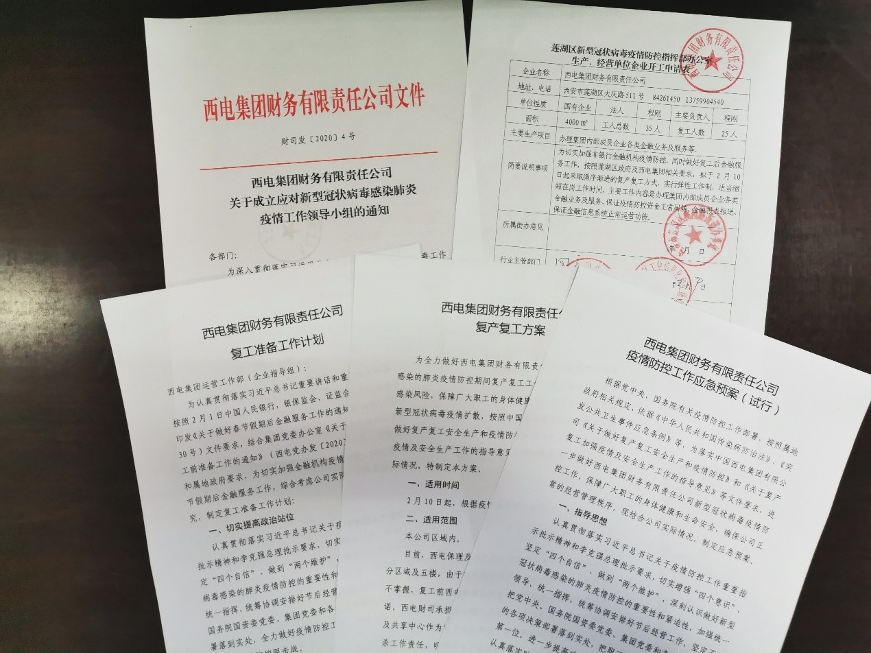 自疫情发生以来,西电财司党总支高度重视,积极应对,第一时间成立疫情防控工作领导机构,党总支书记任组长,各党支部书记为责任人,部署公司疫情防控工作。先后制定《复工准备工作计划》、《复产复工方案》和《疫情防控工作应急预案》等文件及通知,先后设立“绿色快捷”金融服务通道等保障措施,创新金融服务,便捷金融手续,用实际行动支持医疗行业抗击疫情、支持集团实体企业复工复产,充分体现集团内金融机构的责任担当。为动员所属党支部和党员干部不忘初心、牢记使命,全力投入疫情防控阻击战,西电财司党总支下发《致全体员党员的倡议书》,要求党支部及时行动、靠前战斗,筑牢基层战斗堡垒,充分发挥党员先锋模范作用,组织动员广大党员在疫情防控战场上坚持站在最前列、冲在第一线。