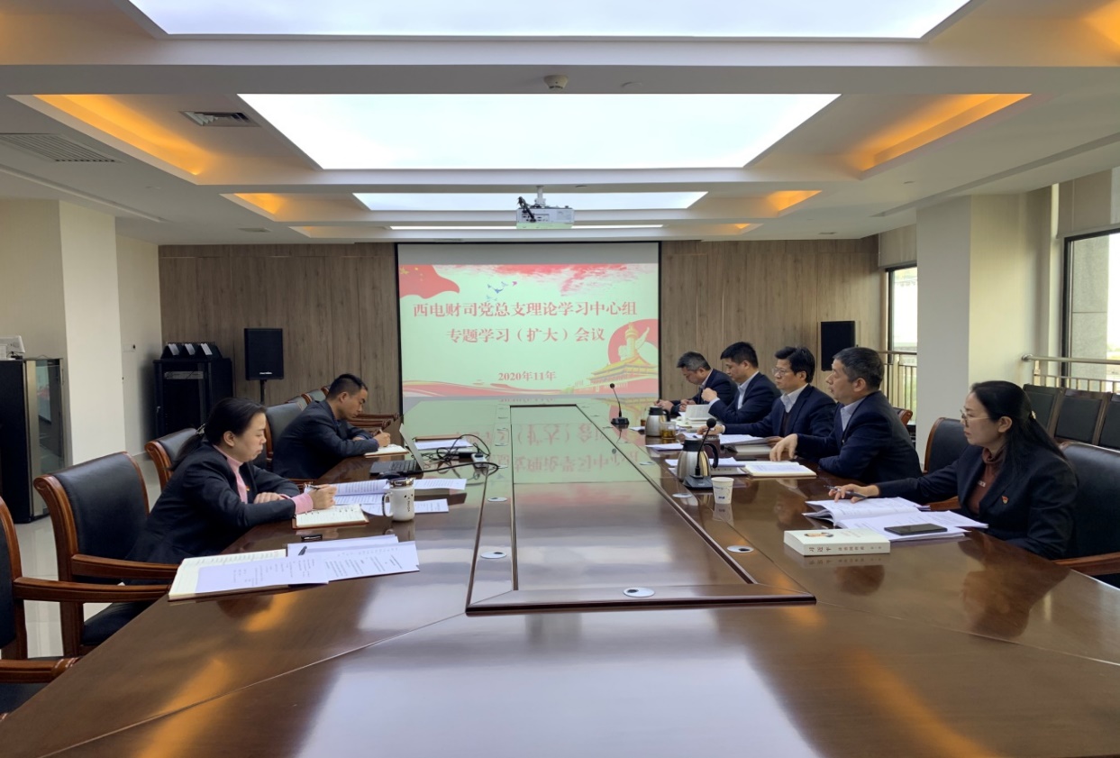 1118日上午,西电财司党总支理论学习中心组召开11月集中学习(扩大)会,专题学习十九届五中全会精神。西电财司党总支领导班子成员,各党支部书记参加本次学习,中国西电集团党委工作部(宣传处)焦利芳出席督导本次学习。