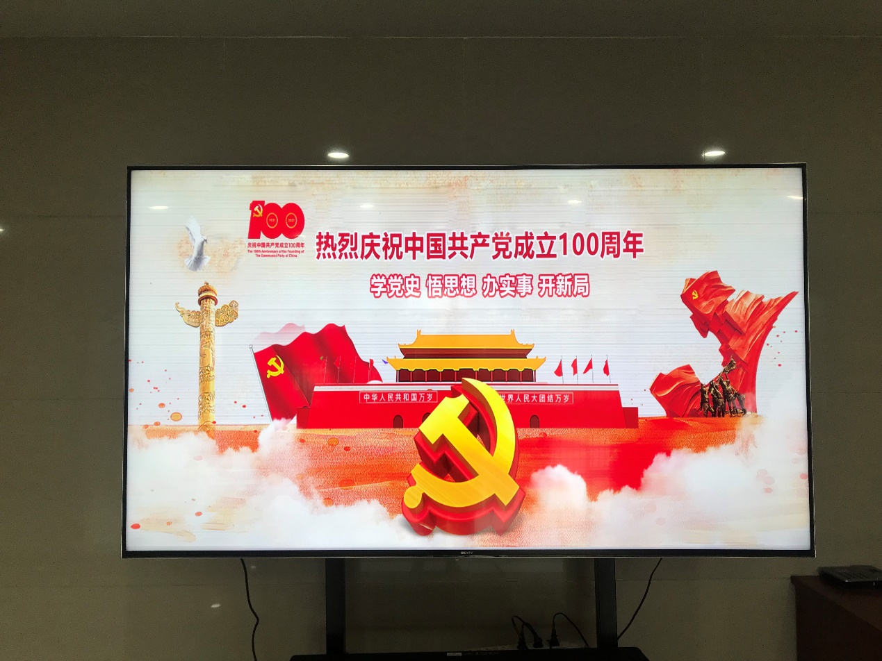 利用营业大厅电子屏滚动展播建党百年庆祝活动宣传标识,增强感染力、影响力,活跃“中国共产党成立100周年庆祝活动”氛围。