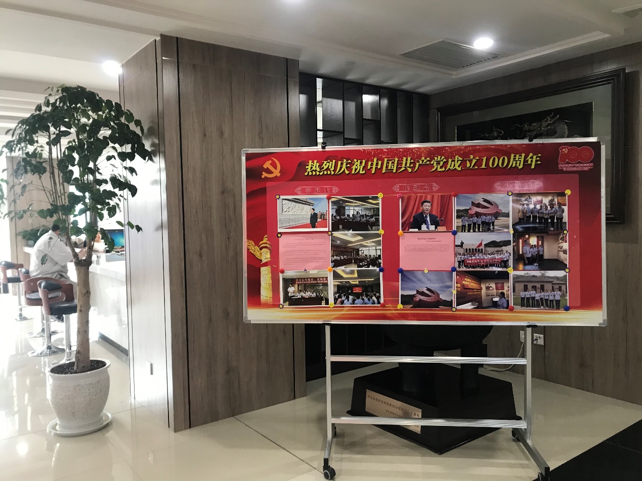 积极打造支部宣传阵地,通过宣传展板营造党史学习教育浓厚氛围,教育引导广大干部职工强化党史学习意识,增强责任感和使命感,将所学所思转化为干事创业的政治热情。