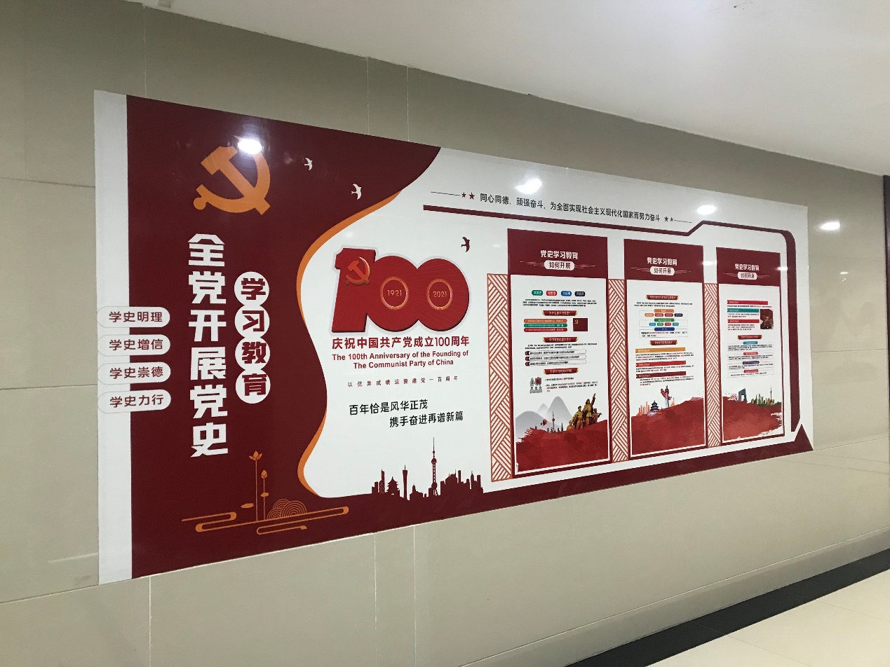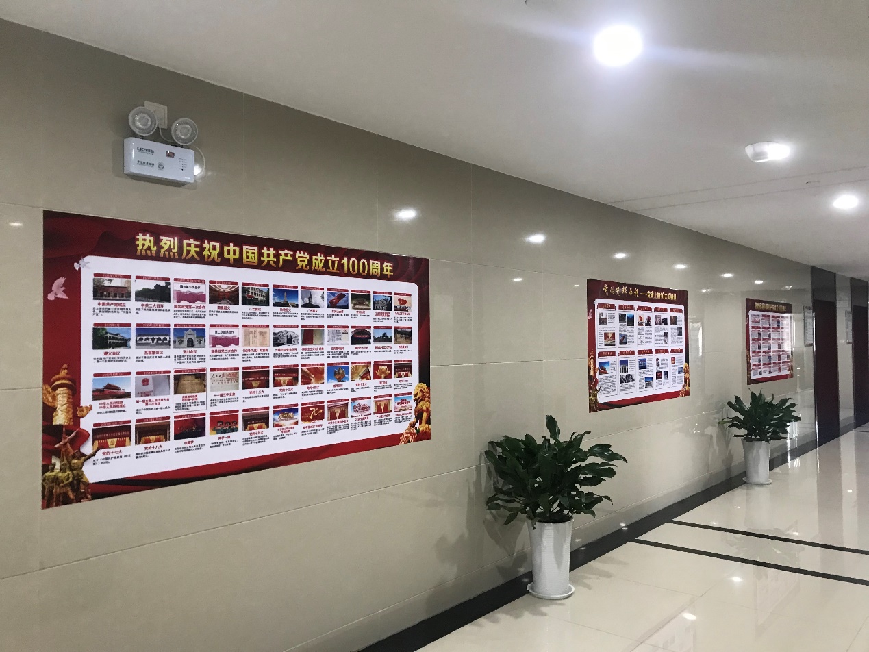 因地制宜地利用办公楼走廊墙壁,打造出氛围浓厚的“党史走廊”。以图文并茂、庄严生动的形式展示了中国共产党的光辉历程。