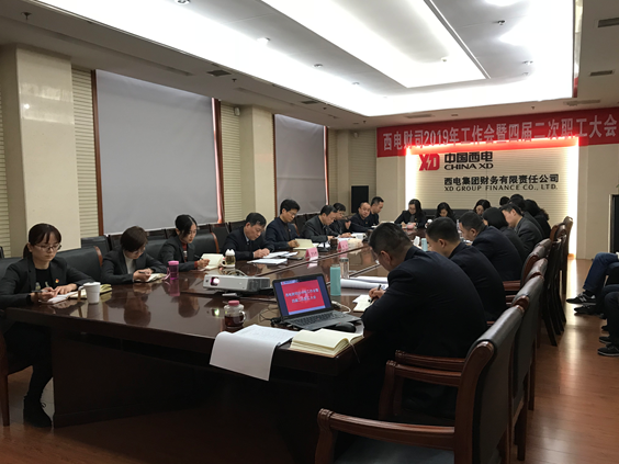 1月31日下午,西电财司召开2019年工作会议暨四届二次职工大会。西电财司中层及以上领导干部、全体职工参加会议,会议由总经理毋浩民主持。