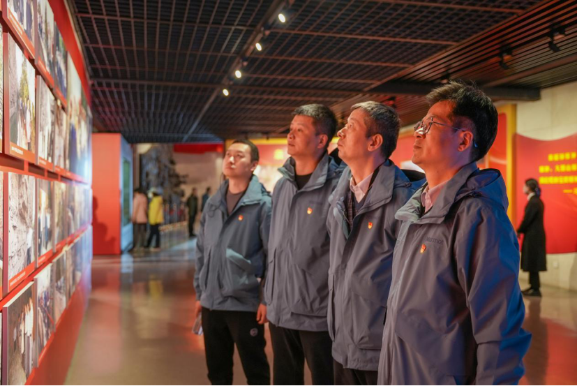 在红旗渠纪念馆中,西电财务公司的党员干部聆听着一段段感人的故事,回顾一幅幅动人的纪实图,林州人民修建红旗渠不认命、不服输、敢于战天斗地的英雄气概震撼人心。