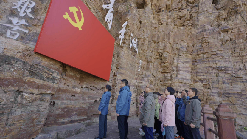 在随后的体验教学中,西电财务公司的党员干部走过太行山上的“红飘带”、“水长城”,来到红旗渠的咽喉工程——“青年洞”。走在峭壁下的红旗渠畔,看着悬崖上修渠人一锤一钎凿出的山洞,大家读懂了修渠人“劈开太行山,漳河穿山来”的战天斗地事迹,切实感受了引漳入林的艰难,更感受到了先辈们当年的决心和雄心。