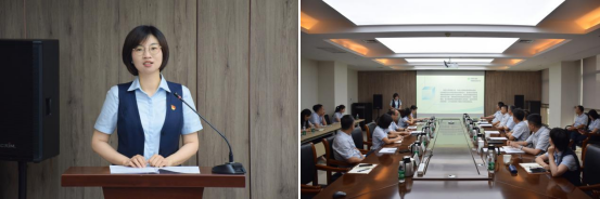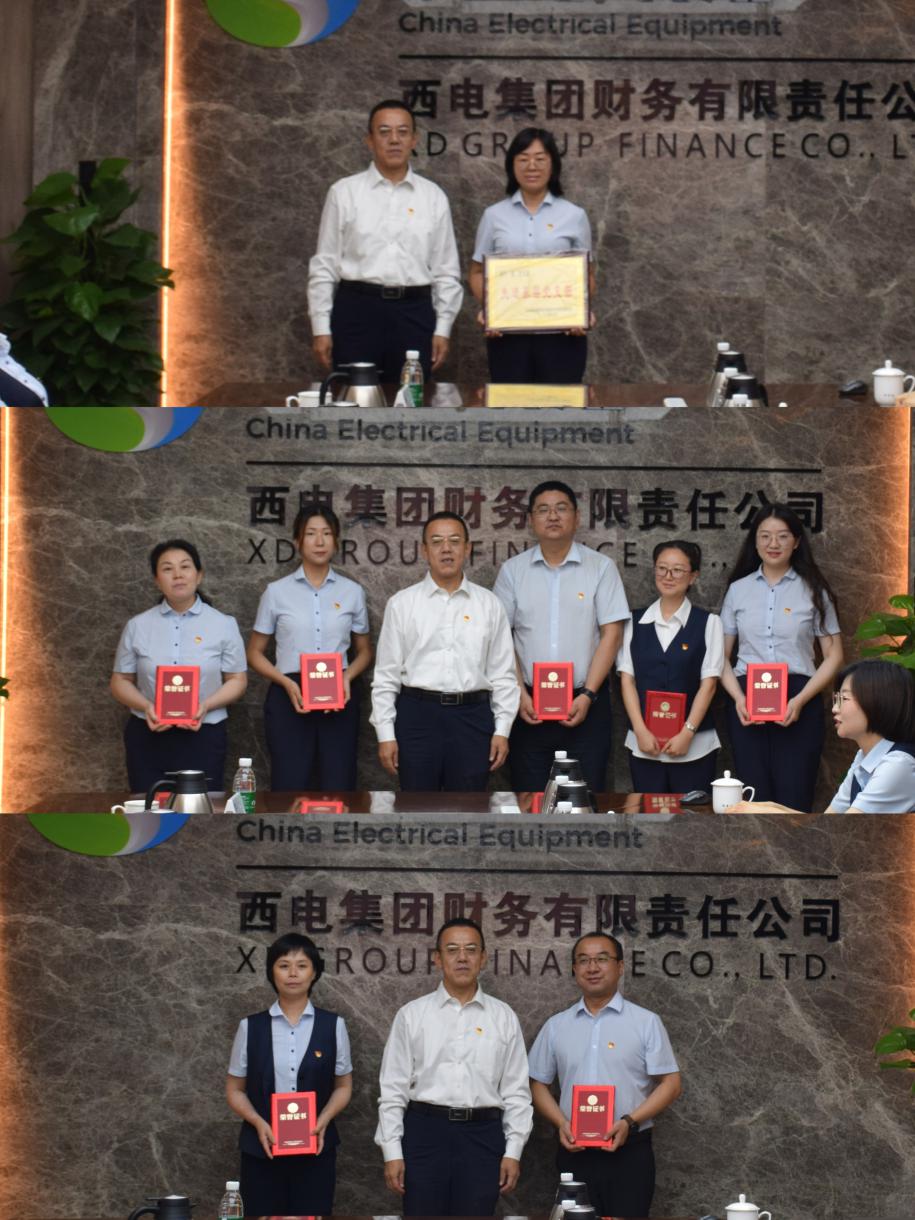 程刚同志宣读财务公司党总支2023至2024年“两优一先”名单。石丹同志向“先进基层党支部、优秀共产党员、优秀党务工作者”颁奖。通过学先进、树榜样的方式激励全体党员守初心、讲实干、比奉献,充分发挥党员先锋模范作用。
